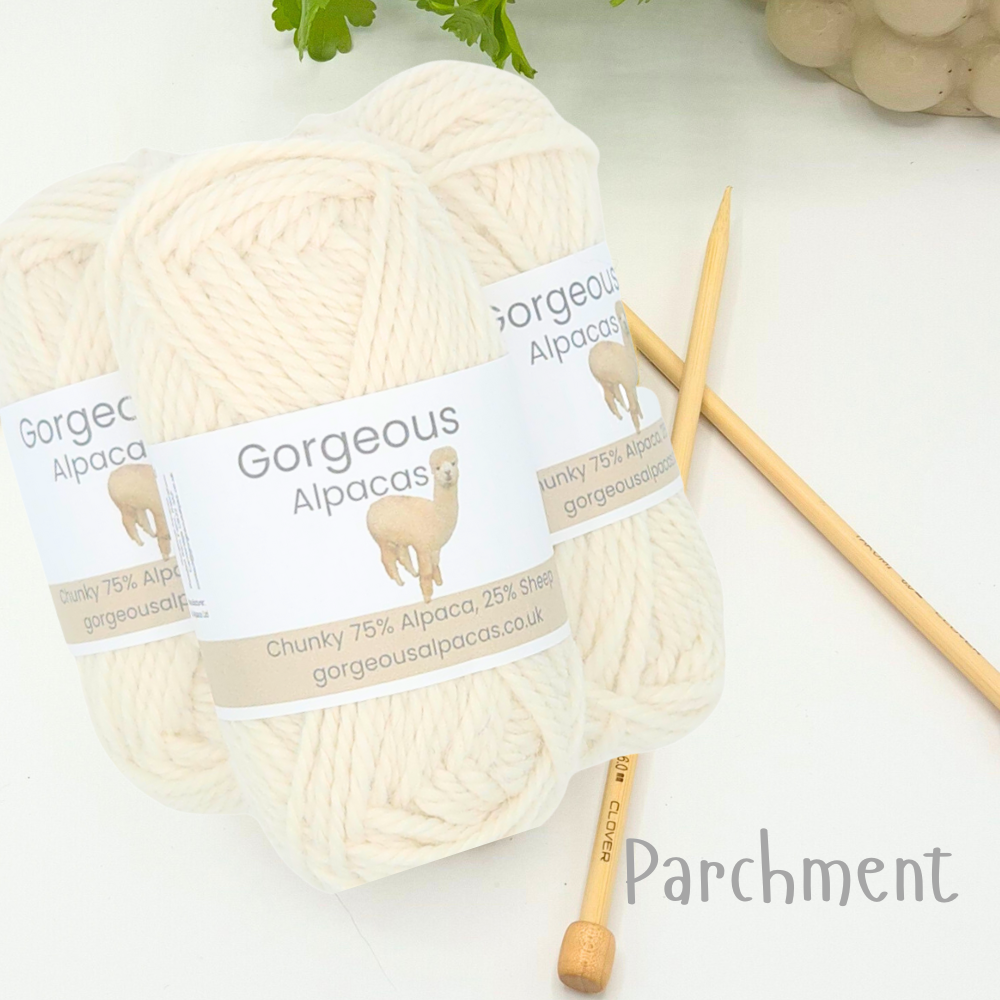 - 150g (150m) Gorgeous Chunky yarn made from 75% alpaca/25% sheep