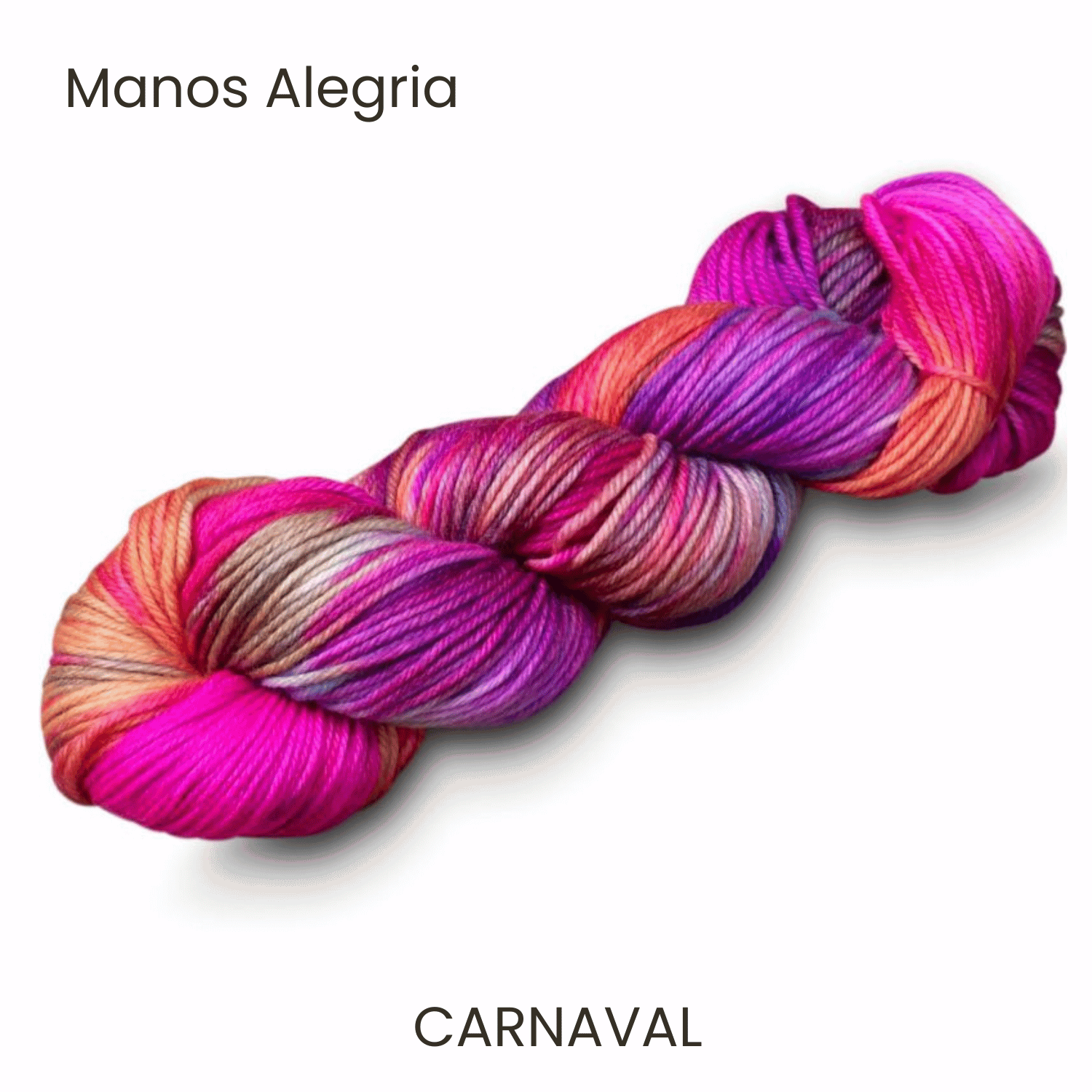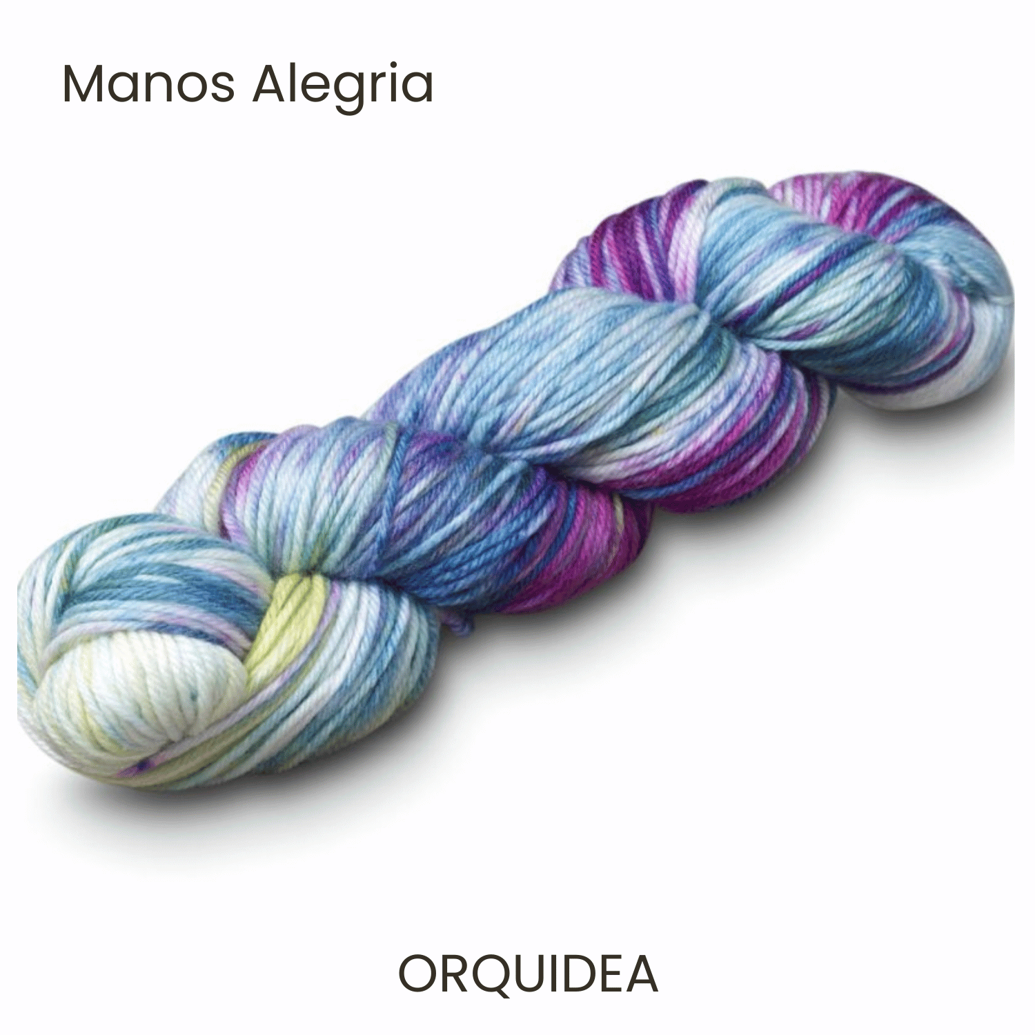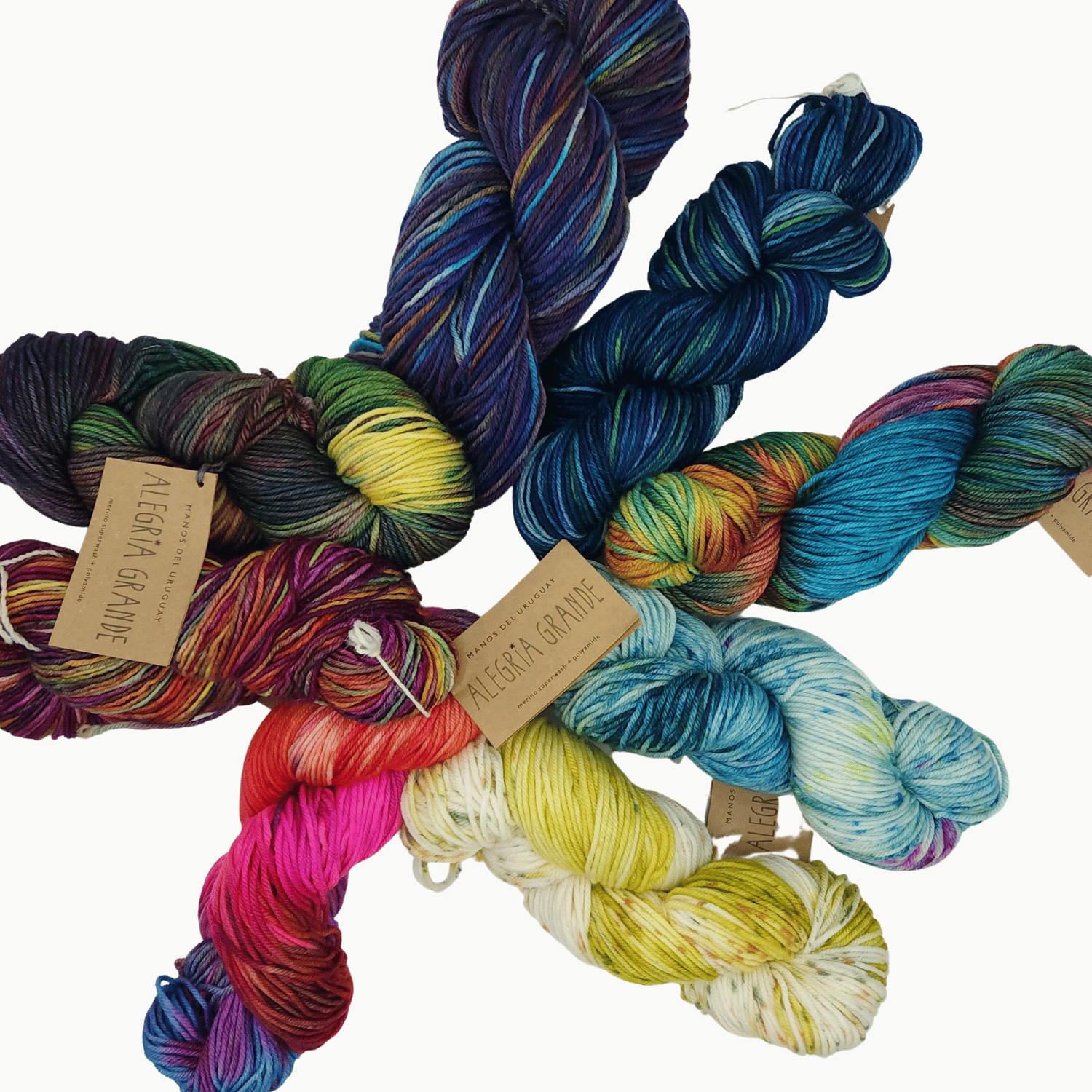 - 1 x 100g hanks (75% superwash Merino/25% Polyamide),180m/197yards per 100g hand dyed Manos Del Uruguay Alegria Grande yarn