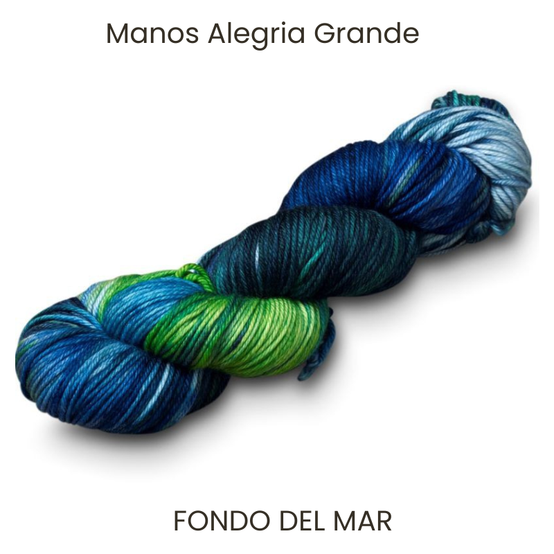 The Manos Alegria Grande yarn is just so soft and beautiful to work with, I’m currently knitting the Garden Shawl pattern using Fondo Del Mar. The colours are just gorgeous!