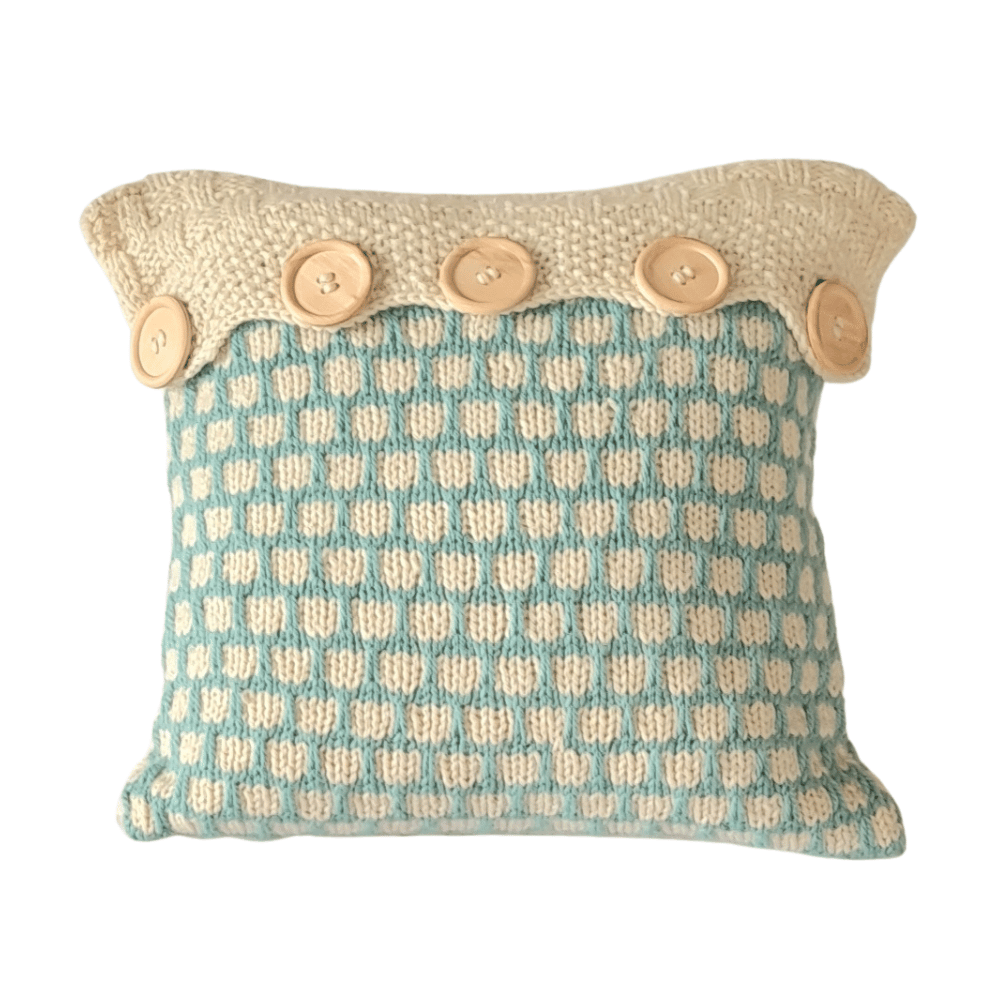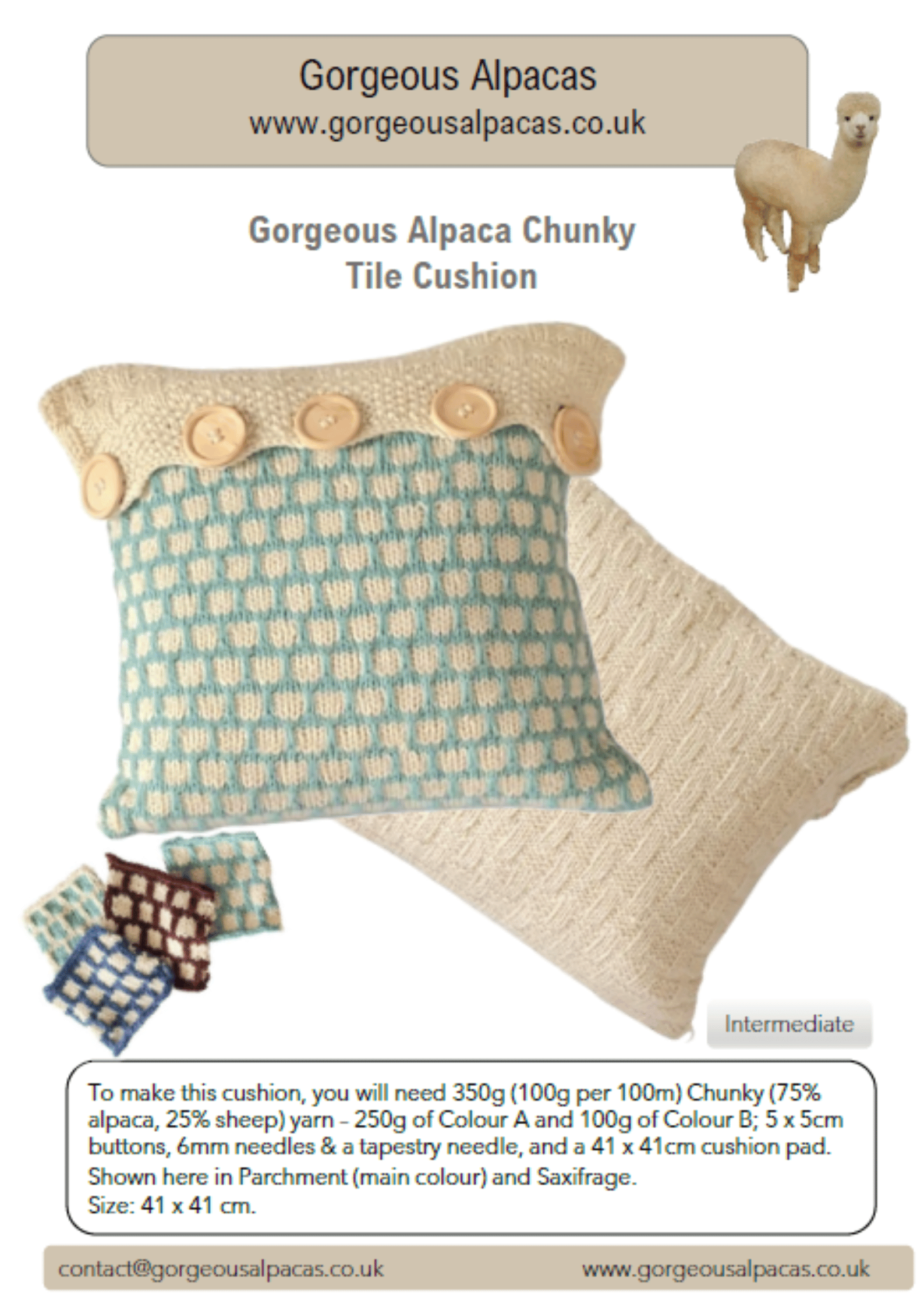 You will also need 5 x 5cm buttons, 6mm needles & a tapestry needle, and a 41 x 41cm cushion pad.