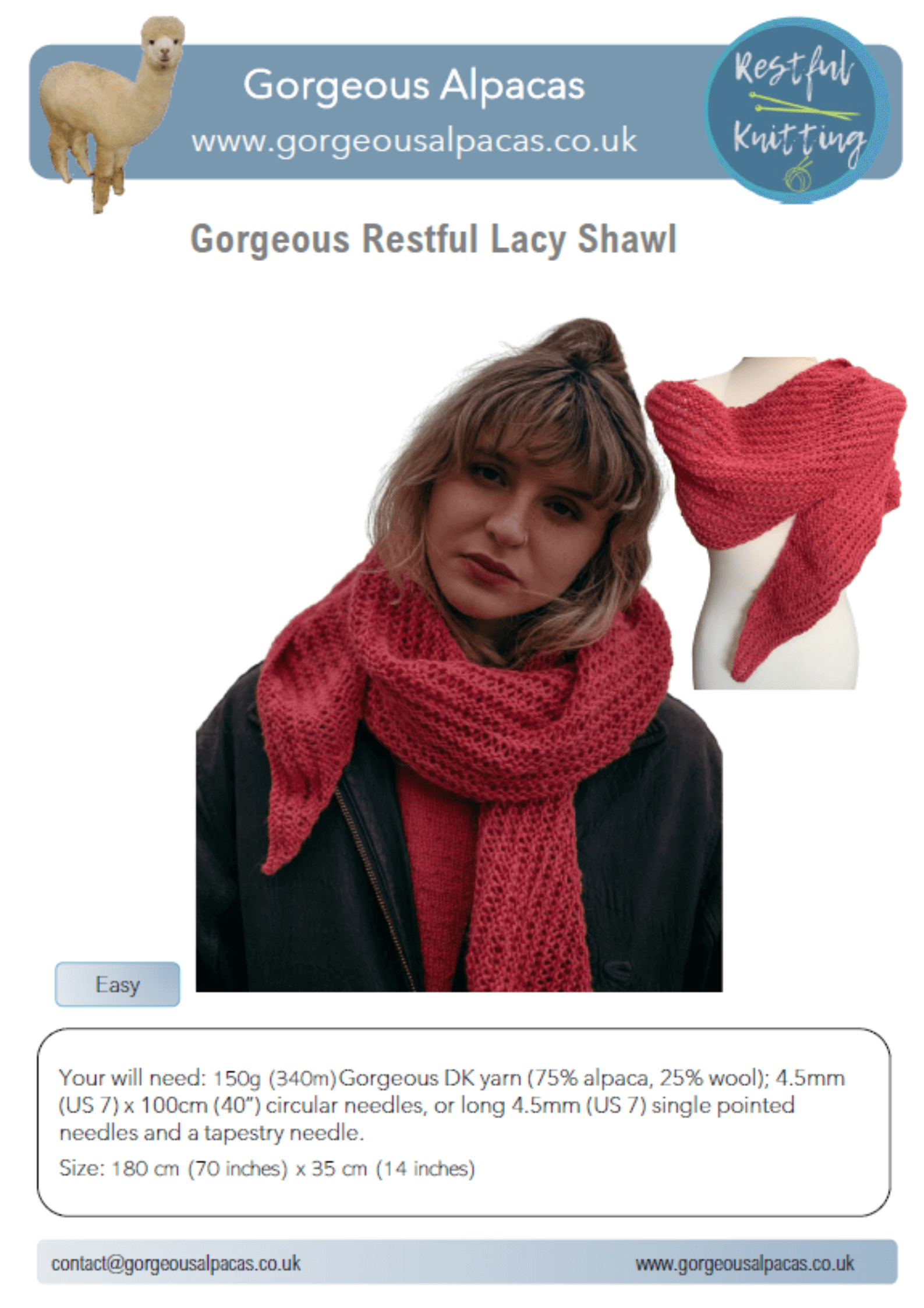 Part of our Restful range. We recommend matching this with 150g of our DK lightweight yarn and long 4.5mm needles. The gauge recommended is 21 sts and 27 rows over a 10cm square.