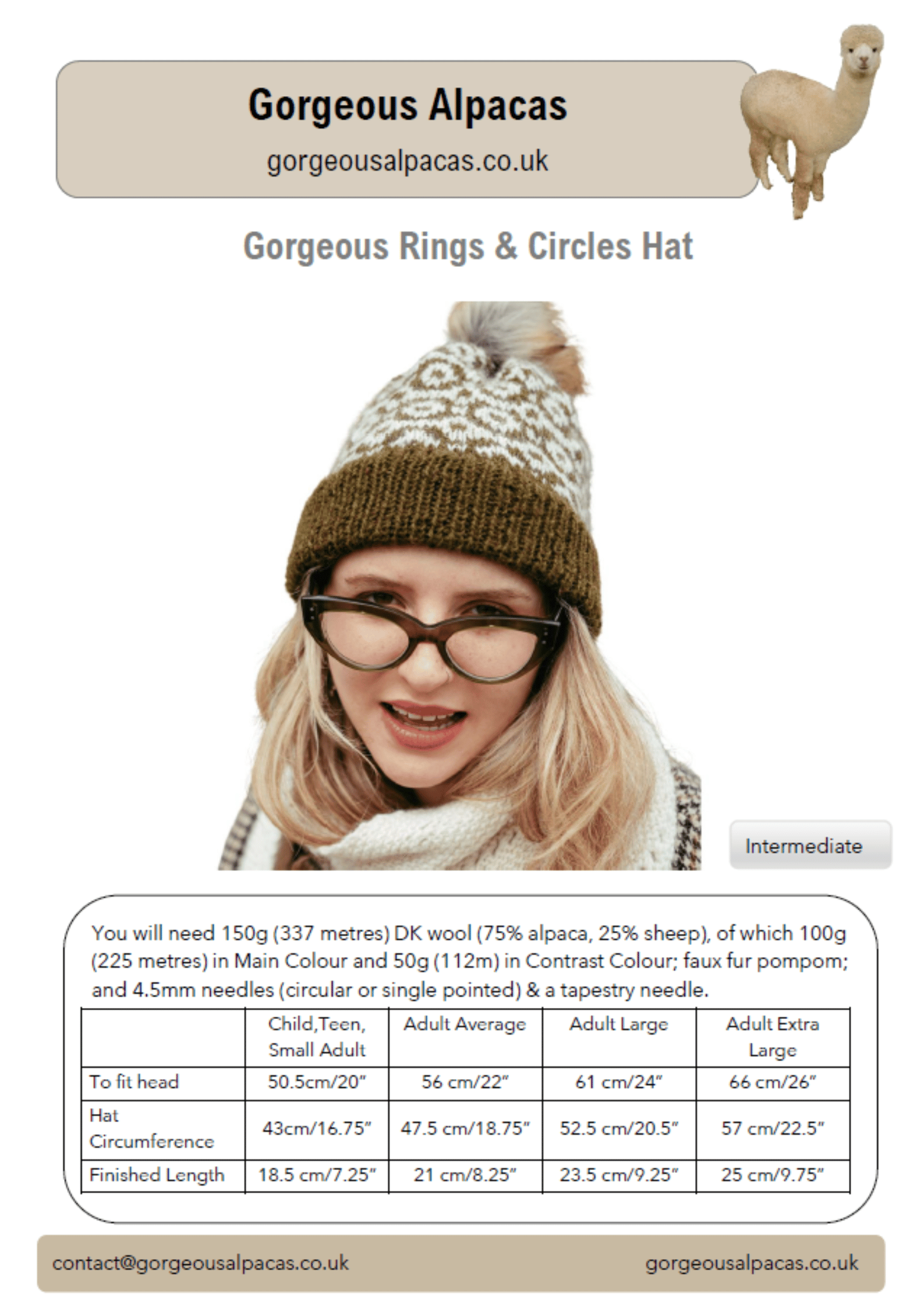 The pattern includes instructions for knitting in the round, or flat. We recommend matching this with 150g of our DK lightweight yarn, for which the tension 21 stitches and 27 rows over a 10cm square.
